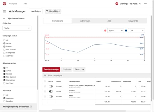 Pinterest introduced new filter performance data for Ads Manager in October. The new filters allow you to choose multiple criteria at once (as opposed to switching between screens) and to choose an objective, status, and conversion settings simultaneously. The data is also featured on a more dynamic graph, letting you select or search for specific campaigns, ad groups, and ads. Your choices are shown on the graph immediately.