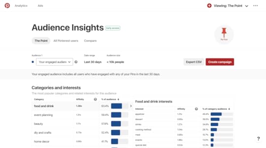 The new audience insights view provides more in-depth information about the users who are engaging with your Pins. You have access to information about your audience’s demographics and interests. To view these insights, log in to your Pinterest business account, navigate to the Audience insights page in Pinterest Analytics, and select “Your engaged audience” from the “Audience 1” dropdown.