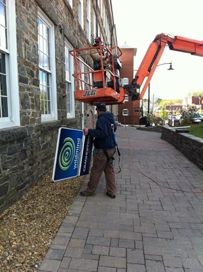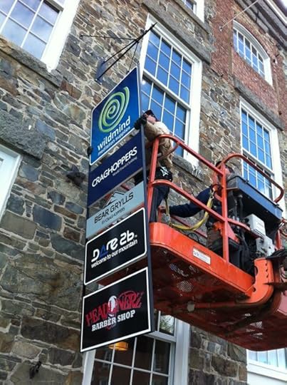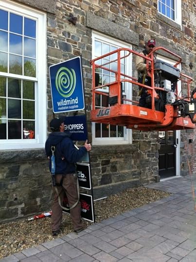 As I arrived at work today, the signmakers were just starting to hang Wildmind’s new sign outside of the mill building that we moved into back in February. We’re very pleased with the way it looks.