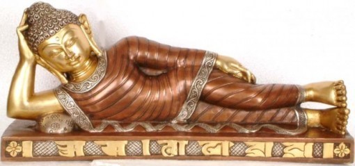 Oddly, very few people seem to try meditating lying on their side, even though images of the Buddha doing this are abundant. This may be because the Buddha passed away while meditating on his side, and when people see statues depicting this posture they don't think "that's the Buddha meditating on his side" but "that's the Buddha dying." So the connection between this posture and meditation tends to get lost.The Buddha didn't lie down this way only when he was dying. He lay down like this often when he was meditating. In fact this is how he advised monks to go to sleep, so that they could be mindful right up to the last moment. So this is a meditation posture in which the Buddha happened to die, not a special posture for Buddhas to die in!