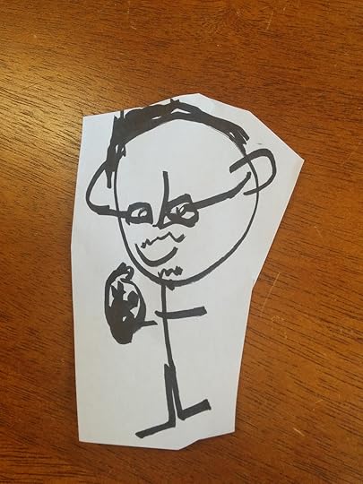A portrait of me, by my son. The small bundle in my arms is him when he was a baby.?