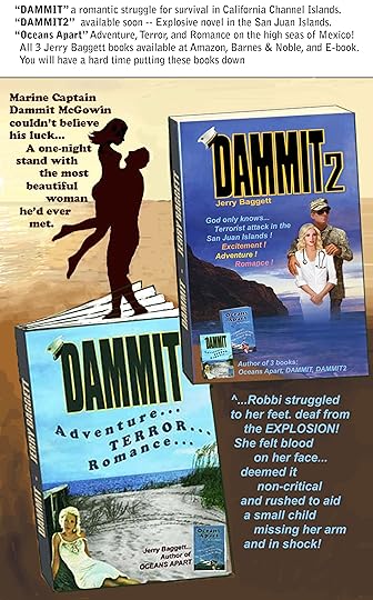 Dammit is an action and adventure thriller written by Jerry Baggett. Marine Captain Dammit McGowin and his brother, Dick, had gone for a leisurely and only marginally competitive run before ending up at the Beachside Bar in Virginia Beach. The sand-strewn, open air bar was the perfect place for the two brothers to enjoy the short time left for them to relax together before Dammit was due back at Pendleton. Dammit had only one more month to go before he was out of the Marines, and he could start making his dream of owning a marine architecture business a reality. The two had barely begun settling in and enjoying the scenery when they noticed some bikers giving two women a hard time.