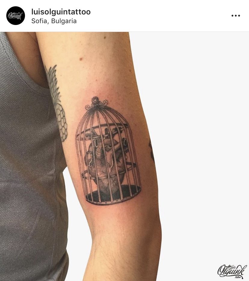 16.- Puesto que era mi primera novela quería tatuarme algo que la representara. De primeras pensé en el ISBN (9788494568268), pero, un día, me topé en Instagram con algo mucho mejor. Luis Olguín fue el artífice de este corazón enjaulado, el tatuaje de La libertad de un gorrión.