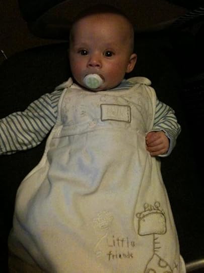 Here he is in a sleeping bag that looks kinda like a dress: