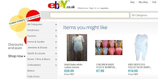 Baby stuff. Baby stuff. Baby stuff…“Adult Baby White Cotton Onesie”.