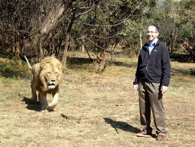I'm currently in Cape Town, South Africa, and I wanted to catch up on some things from last week. When I encountered the semi-tame hyena and elephants in a special facility, there was also another animal that I encountered: a five hundred pound lion.