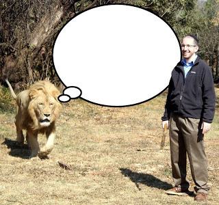 I'll write more about this extraordinary experience and post more pictures/ video on another occasion. Meanwhile, I thought that it would be fun to have a contest. Please suggest what you think would be amusing to portray the lion as thinking when he approached me: