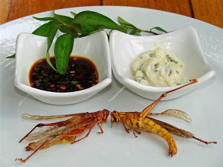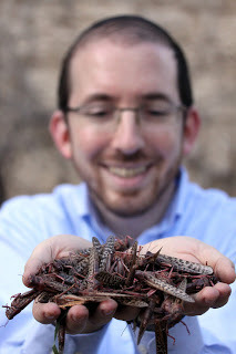 "From an ecological perspective, insects have a lot to recommend them. They are renowned for their small ‘foodprint’; being cold-blooded, they are about four time as efficient at converting feed to meat as are cattle, which waste energy keeping themselves warm. Ounce for ounce, many have the same amount of protein as beef–friendly grasshoppers have three times as much – and are rich in micronutrients like iron and zinc. Genetically, they are so distant from humans that there is little likelihood of diseases jumping species, as swine flu did. They are natural recyclers, capable of eating old cardboard, manure, and by-products from food manufacturing. And insect husbandry is humane: bugs like teeming, and thrive in filthy, crowded conditions."Can you imagine what an impact it would make if Jews were known not for exploiting animals in factory-farming and indulging in massive gastronomic excesses, but instead for adopting a more environmentally and animal-friendly approach? In fact, eating locusts doesn't even make you fleishig, so you could have a locust cheeseburger. I say, let's get back to our Biblical roots and tuck in. Bon appétit!