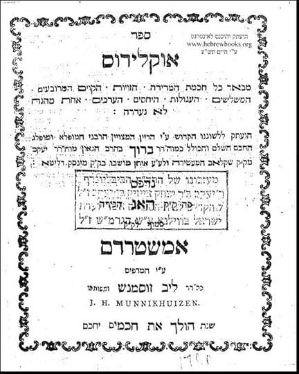 It's a Hebrew translation of Euclid, by Rav Baruch of Shklov. He was encouraged to publish it by his rebbe, the Vilna Gaon. He writes in the introduction that the Gra told him that “according to the measure of what a person lacks in general wisdom, he will lack a hundredfold when it comes to Torah wisdom, because the Torah and general wisdom are closely linked together.”