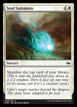 Jason looked at it. Rufus saw a slight twinge in Jason’s lips as he read the creature’s ability. Rufus smiled. Good, at least he appreciates that he’s now on a clock. Rufus ended his turn. Jason drew another card. He placed another forest on the table. This put him at four. He looked at the top card of his deck, tapping his ‘Lens of Clarity’ as he did so. He tapped all of them. First he placed a white spell on the table. It read ‘Soul Summons."