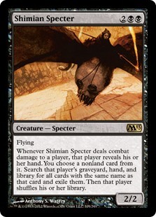 Rufus read the card. Jason tapped two more of his lands and played a spell. He was now out of cards. However, the spell he’d played allowed him to draw a card. He did so and immediately put a forest down, bringing his land count to five. He placed a single dice upon his ‘Scroll of Masters.’ A single dot faced the ceiling, signifying the card now held one counter. Rufus winced. He eyed the single creature laid against him. It moved into the attack position. With only a single land untapped, Rufus doubted Jason had enough mana to flip whatever creature, if it was a creature, up from its hidden position. He allowed the damage to pass. He turned his own twenty sided die so that the number sixteen faced the ceiling. Now it was his turn. Rufus drew a card. I don’t need anymore swamps! Rufus thought. I placed his new swamp on the table all the same. He matched Jason’s five lands. Rufus immediately tapped four of his lands and placed his favorite card on the table.‘Shimian Specter,’