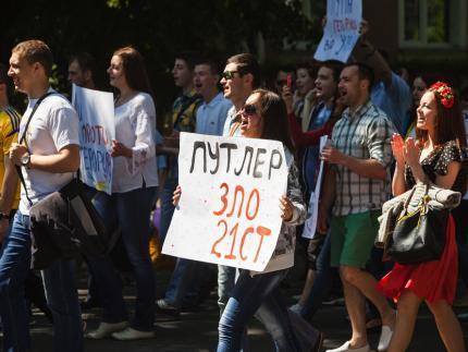 The democratic national deputy, Oleh Lyashko, who ran for president on May 25th and received over 8 percent of the vote, actually sang the song at a mass rally in Ternopil. That incident didn’t seem to annoy the Kremlin. But when Ukraine’s acting minister of foreign affairs, Andrii Deshchytsia, stated at a June 15th anti-Russian rally in Kyiv that he agreed that “Putin is a khuylo”—contrary to media reports, Deshchytsia never sang the chant—Moscow exploded, with calls for Deshchytsia’s resignation coming from his Russian counterpart, Sergei Lavrov, and the head of the Duma’s Committee on International Relations, Aleksei Pushkov.