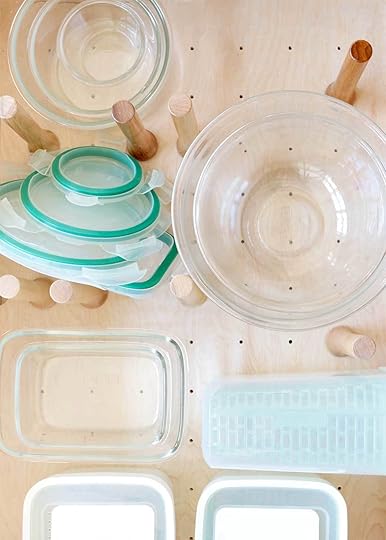 I stock a specific set of ingredients in my kitchen. For example, I buy 1 kind of rice, 2 types of pasta noodles, 20 spices, the same nuts and seeds, etc. I have a clear, permanent container for each ingredient. Bulk shopping works really well for this type of kitchen organization, as I’m able to refill my containers without any additional packaging. If you want to give yourself over to this method, check out my book, The Minimalist Kitchen (currently very low stock) and take The Minimalist Kitchen Course.