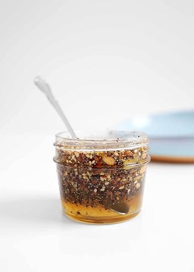 Ahead of time, make the seedy honey. Add the seeds to a skillet and toast over medium heat until fragrant and, as Ashley says, until you notice a slight shift in color and some of the flaxseeds begin to pop. Turn heat to low, and stir in the remaining seedy honey ingredients. Bring to a rolling boil for about 2 minutes or until slightly thickened. Pour into a jar and allow to cool for at least 10 minutes to "allow the flavors to infuse." Once cooled, stir in more water as needed to thin to desired consistency. Store covered for up to a month.