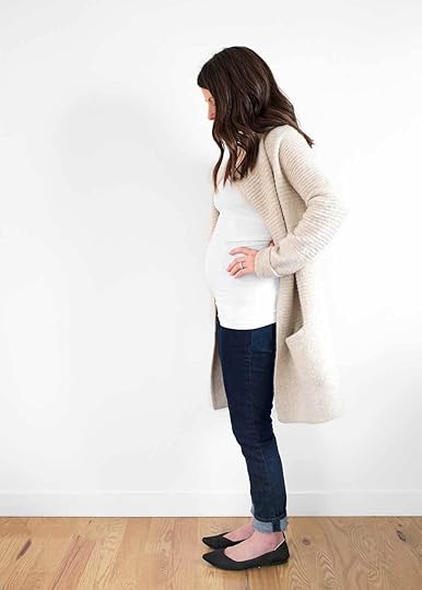 Scour your closet for items that can still be worn, like open-front sweaters, cardigans, vests, and tunics. It’s so nice to be able to wear items you already own. They make me feel a little like my old self.