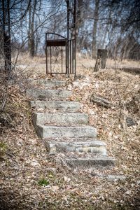 The steps are cut into the side of the road that leads away from Jackie’s place – not towards Town, but away, deeper into the fringes. We found them one night while we were stumbling around in the dark, walking off the couple inches of vodka that had been left in the bottle Jackie pinched from her grandma’s freezer. I can never tell if the steps are going down into the ravine, or going up out of it. Now we sit here on Fridays and talk or drink or just ping.
