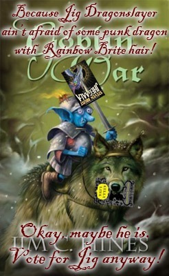 This time Jig and Smudge are up against Caine Black Knife, by Matthew Stover. More tough competition, but this round, I say we win one for Smudge! Click on the poster to show the fire-spider love! (And check out some of the other