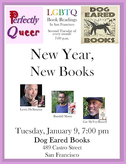 I’ll be reading with the perfectly fabulous Perfectly Queer again, this time in San Francisco. The theme: New Year, New Day, New Books. I’m on the bill with two other recently published authors: Lewis DeSimone and Randall Mann.