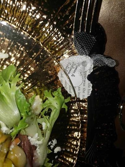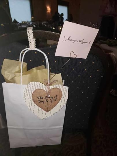 Check out these gorgeous roses made from books. I made a wreath like this a few years ago and my roses never looked that full and pretty. As much as I hate the idea of tearing up a book, if it's for something like this, maybe I'm okay with it. What about you? Could you see yourself destroying a book to make roses or other decorations? Every table had these tiny "books." Inside was Hershey chocolate, so the stories were extra sweet. ;)