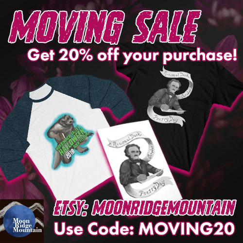 I was asked to do the art for National Dark Poetry Day with the Horror Writers Association and it was such an honor to draw Edgar Allan Poe. To celebrate the day, I'm offering 20% off both on my print shop here and my etsy store, both using the MOVING20 discount until 10/7/2018.