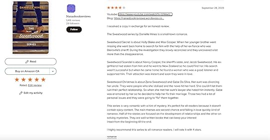 A Sweetwood ReviewWriters love reviews. Readers love reviews. So I’m very grateful to all who take the time to leave an honest review of my books. Here’s Nana’s: