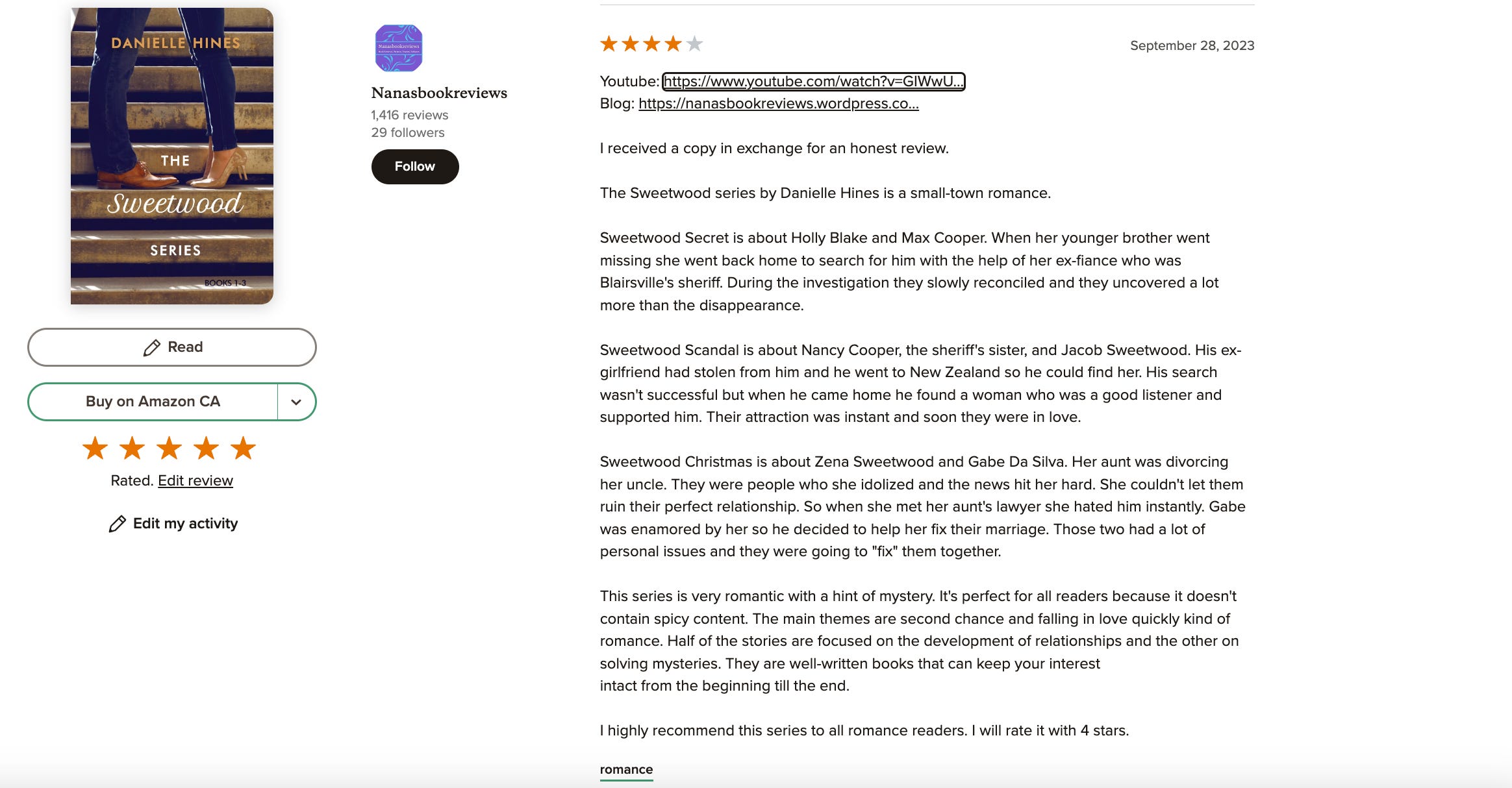 Right now, The Sweetwood Series is available on Kindle at a reduced price. This is the perfect book for anyone in a reading slump or wanting something a bit lighter as we approach the holiday season. ❄️