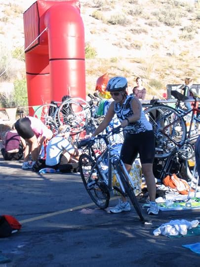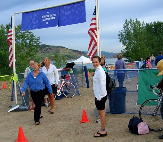 5. If the tri will require you to run through sand, keep a small bucket of water in the transition area to douse your feet in. Wet sand does not rub off.