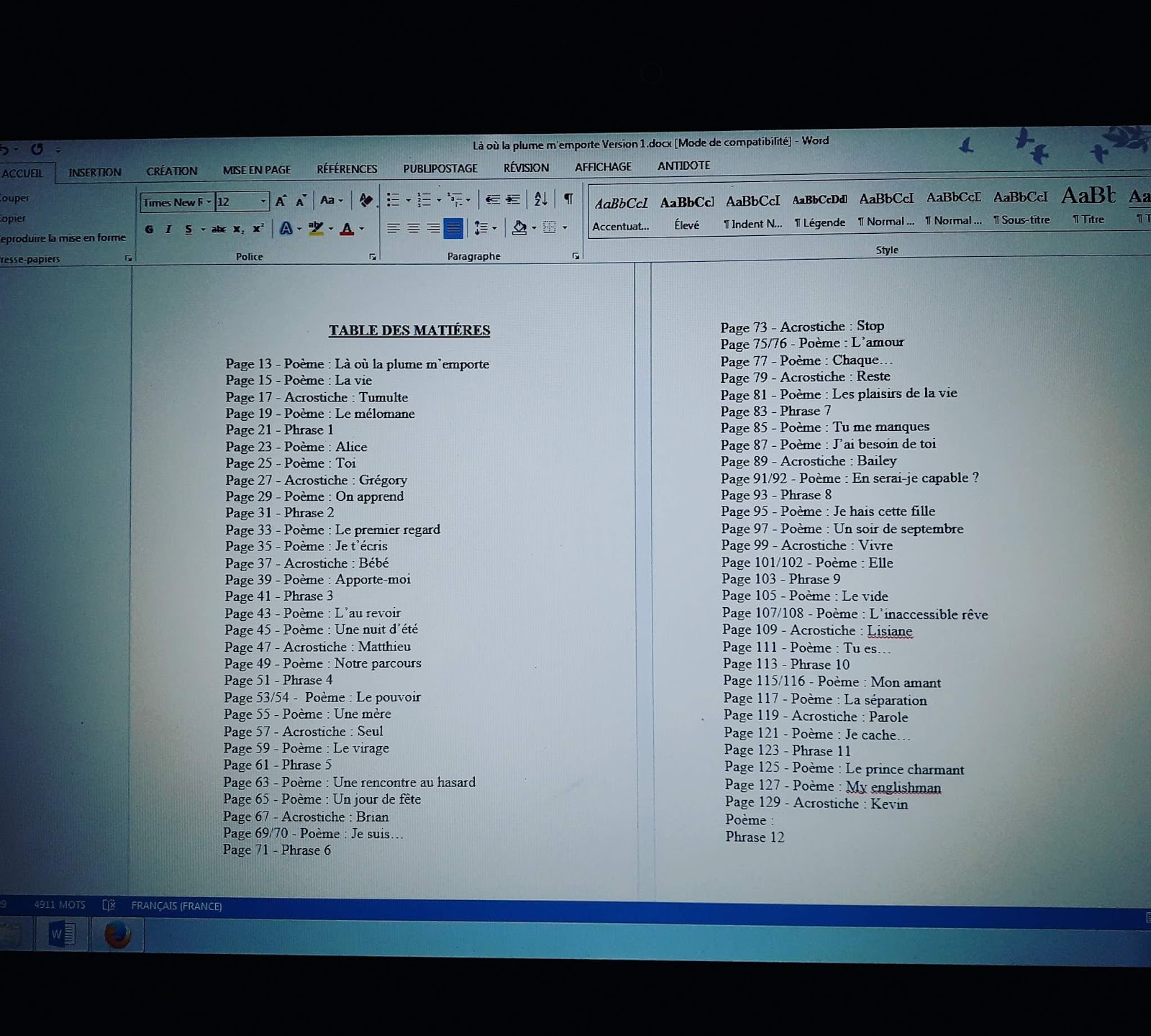 Le livre avance, 129 pages de faite. En exclusivité pour vous un petit coup d'œil aux deux premières pages du sommaire. #làoùlaplumememporte #2ndlivre #trophâte