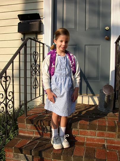 Here’s a picture of my daughter (the youngest of three) on her first day of kindergarten. I look at this picture and remember how proud she was to go to school with her big brothers. I remember how much she loved that backpack with its Hawaiian flowers. If I had tried to take it from her, she would have wrestled with me to keep possession of it. She would have been indignant. It was hers. A badge of honor. She would carry her own things to school.