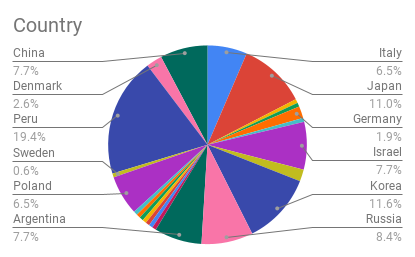 Czech, Japanese, various- 3 each (5.8%)