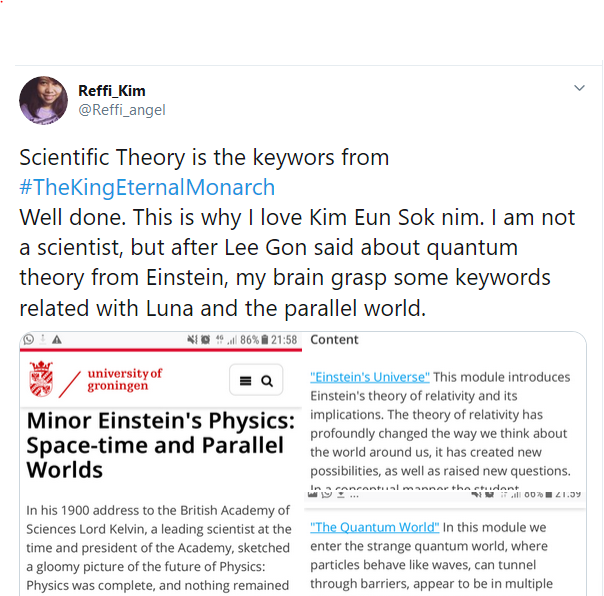 Kalau tertarik dengan sebuah film atau drakor, saya tak segan untuk melakukan riset fakta cerita sampai ke penulis skenarionya. Seperti yang saya lakukan ketika mengikuti drama The King Eternal Monarch beberapa bulan lalu. Tweet ini mendapat sambutan yang cukup baik karena plot dan alurnya memang terkait dengan time-traveling serta sains.