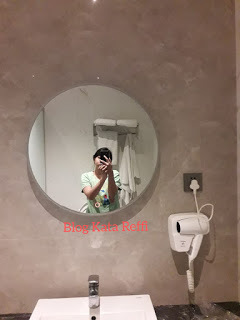 Kamar mandinya pun dilengkapi fasilitas yang oke. Sampai saya tertarik untuk melakukan mirror selfie, kacanya bening dong. Hairdryer pun bisa digunakan jika ingin mengeringkan rambut. Keesokan paginya ketika sarapan, saya salut dengan protokol kesehatan yang dilakukan oleh staf hotel. Tamu tidak boleh mengambil makanan sendiri. Sudah ada staf restoran yang membantu mengambilkan makanan dan posisi tempat makan pun berjarak. Semua staf tentu memakai masker. Makanan tersedia dalam gaya Indonesia dan Western, rasanya enak.