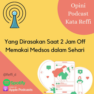 Kita selalu menggunakan medsos. Paparan medsos juga berpengaruh pada kesehatan mental. Apa yang ditampilkan orang lain entah kebahagiaan dan kesuksesan, secara tidak langsung bisa mempengaruhi kondisi mental. Terinspirasi secara positif memang baik, tetapi akan berbahaya jika kita mulai terus membandingkan diri dengan orang lain. Di dalam podcast ini saya berbicara tentang manfaat menentukan blok waktu untuk mematikan medsos dua jam dalam sehari. Klik di sini untuk mendengarkan di browser atau bisa putar di Anchor, Spotify, dan Apple Podcast 'Reffi_d'.