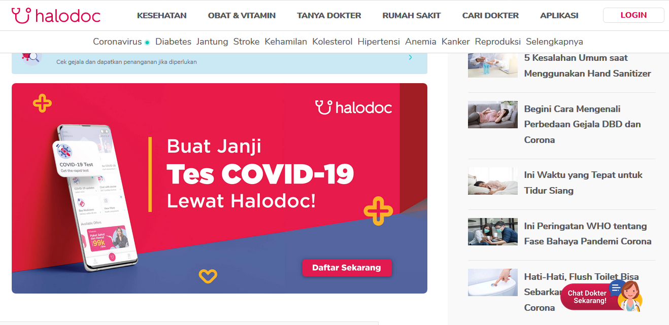 Informasi tentang cara menjaga kesehatan sampai jenis penyakit dipaparkan cukup lengkap di Halodoc. Klik saja kategori Kesehatan dan lihat susunan nama penyakit secara abjad. Wawasan ini penting agar saya tidak termakan isu hoaks terkait Covid 19 dan penyakit lainnya.