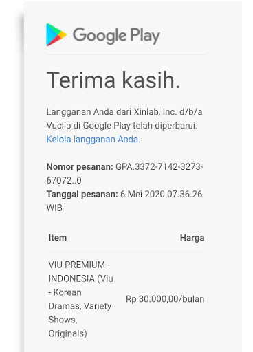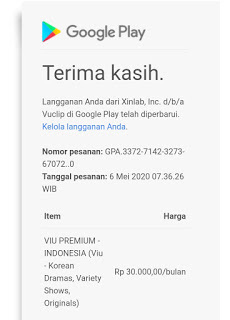 Langganan Viu dengan Gopay Viu juga termasuk dalam daftar langganan aplikasi di Google Play. Karena saya tidak menggunakan kartu kredit, maka saya sangat senang ketika berlangganan aplikasi di Google Play bisa dibayar lewat Gopay.