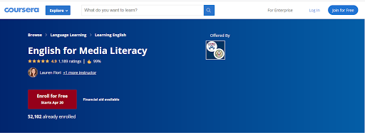 Saya menyelesaikan kursus ini sekitar dua tahun lalu. Pengantar bahasanya dalam Bahasa Inggris tetapi kita bisa mengunduh subtitle Bahasa Inggris sekaligus mengunduh teksnya. Di sini kita akan diajari dasar-dasar penyampaian informasi di berbagai media. Bagaimana jenis bahasa yang digunakan dan tujuan dari media itu sendiri sampai mengenali hoaks.