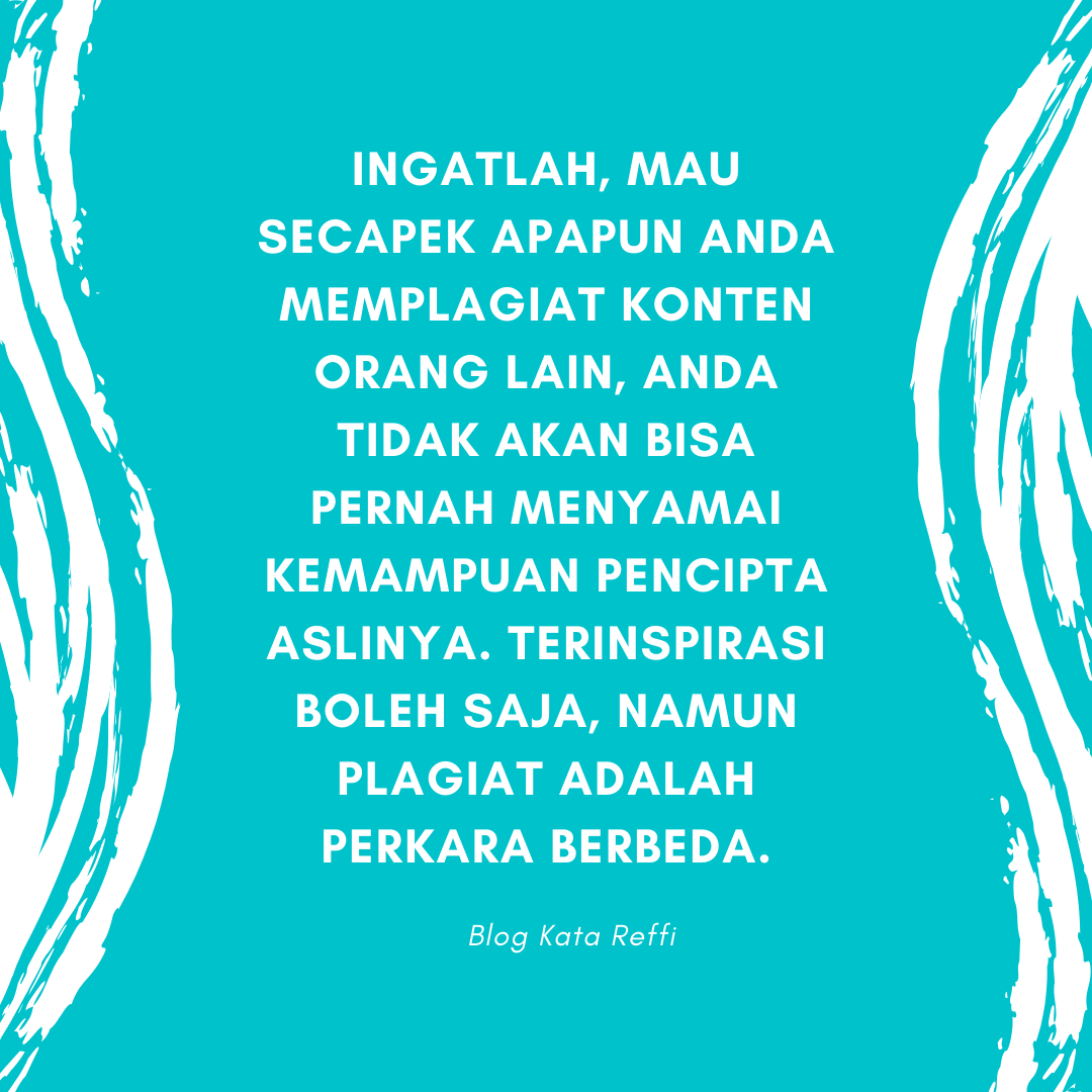 Ingatlah, mau secapek apapun Anda memplagiat konten orang lain, Anda tidak akan bisa pernah menyamai kemampuan pencipta aslinya. Terinspirasi boleh saja, namun plagiat adalah perkara berbeda. Mau berpura-pura sampai satu dekade, jika tidak pernah berlatih membuat konten original, maka kemampuan plagiator tidak akan sebagus mereka yang belajar dari nol.