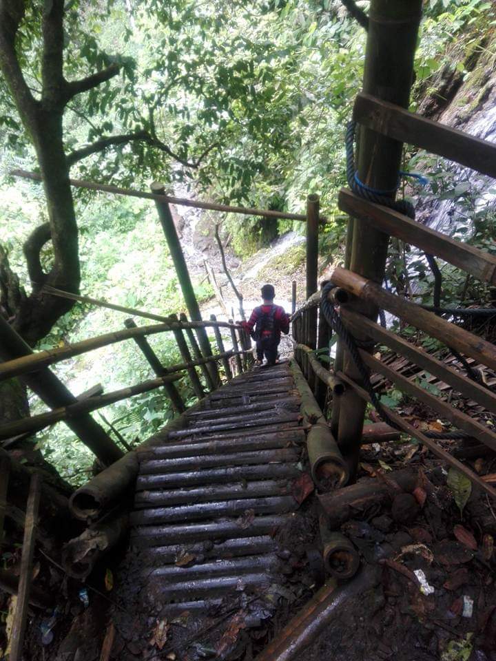 Nah, karena terbius dengan gemuruh dan keindahan air terjunnya, saya dan teman-teman sepakat untuk menuruni tebing dan berjalan menuju air terjunnya. Menikmati dari kejauhan saja rasanya kurang afdol. Bagi yang ingin trekking menuju air terjunnya, jangan lupa untuk menggunakan alas kaki yang nyaman dan tidak gampang slip.