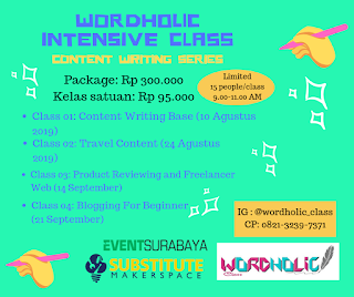 Inilah beberapa tips ringan untuk mempopulerkan artikel di blog pribadi kita. Jangan takut dengan kritik! Mari terus berkarya! Nah bagi yang ingin belajar lebih lanjut tentang content writing di dalam blog, yuk join weekend class di Surabaya ini.