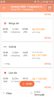 Padahal kalau mau cermat dan berusaha, tiket murah itu sering ada. Contohnya promo tiket pesawat yang kadang mendadak muncul sehingga harga tiket pesawat yang biasanya mahal pun jadi terjangkau. Bepergian ke kota favorit seperti Yogyakarta pun bisa dilakukan kapan saja. Mengecek promo tiket pesawat saya lakukan di aplikasi Pegipegi. Respons loadingnya cepat serta pilihan harganya juga menyenangkan.