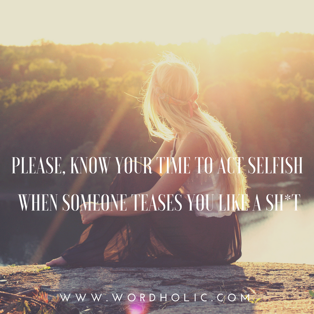 Hanya saja ada orang-orang yang hatinya terlanjur mati karena tak mau menerima nasihat hingga bertindak sengaja terus menyakiti orang-orang di sekitarnya. Kalau sudah begini seharusnya perempuan yang merasa disakiti, tak perlulah meratap berlama-lama. Sedihlah satu sampai dua hari, maksimal seminggu. Mulai asah bakat dan belajar banyak hal baru. Masa diri yang cantik dan berharga ini mau menye-menye hanya untuk laki-laki yang kepribadiannya rendah? Please, know your time to act selfish when someone teases you like a sh*t.