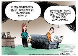 SMS, Mail, WhatsApp, Skype, Facebook och andra chattjänster förenklar och effektiviserar relationerna. Vi är översköljda av sociala medier men våra sociala färdigheter – vanligt hyfs, tålamod, ögonkontakt – försämras. Vi är otåliga med den fysiska verklighetens och våra kroppars fysiska begränsningar och föredrar mer och mer simulerade miljöer framför de verkliga. Vi har ofta förlorat känslan för platsen. Det gäller inte minst mig själv. Jag bryr mig inte särskilt mycket om var jag befinner mig så länge jag har en bra dator, internetuppkoppling och mina stora skärmar. Där lever jag det mesta av min vakna tid. Där trivs jag bättre än på gymmet där jag måste göra jobbiga saker, liksom i den pool jag också har tillgång till. Där riskerar jag att behöva dela platsen med plaskande och skrikande glada barn. Det är just sådant som många av våra teknologier vill göra ”friktionsfria”, som Mark Zuckerberg från Meta så gärna framhåller.