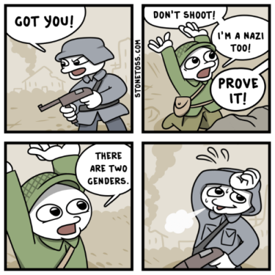 Nazism är inte något som man kan hitta i en eller annan formulering hos en meningsmotståndare som man vill täppa till truten på. Nazism är en ideologi som man kan vara motståndare till eller anhängare av. Den karakteriseras av:
