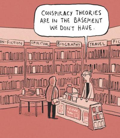 När jag letar på nätet efter bilder att illustrera mina texter med, så är det politiska förnuftet och den sarkastiska tonen på min sida. Till exempel har begrepp som politisk korrekthet och woke en renodlat negativ laddning. Emellertid, med begrepp som konspirationsteorier och konspirationsteoretiker förhåller det sig inte så. De som misstänker bakomliggande konspirationer till det som sker, är också i satirtecknarnas ögon renodlade knäppgökar. Detta trots att det i vissa fall visst finns anledning att tro att det ligger konspirationer bakom. Verkligheten inte bara ”händer”.
