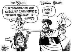 Det handlar också om ren feghet, eftersom politikerna är välmedvetna om att muslimerna kan vara farliga. Den mer eller mindre offentliga person som – enligt islamisterna – tar ett för långt steg, riskerar att framöver få leva med dödshot och livvaktsskydd. Därför hellre hålla käften eller bara säga ”snälla saker”.