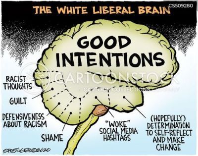 BLM, en öppet fascistisk gruppering som förespråkar våld och att polismakten läggs ner, är det bästa exemplet på vad den vita självförnekelsen resulterar i. Mordet på George Floyd 2020 ledde till 633 våldsamma protester i 220 amerikanska städer och samhällen. Resultat: mängder av skadade och döda, både svarta och vita. De flesta av dessa upplopp hade initierats av BLM-aktivister. Därutöver har vi fått fotbollsspelare som knäböjer före sina matcher, för att visa på de vitas skuld, och vita kvinnor som kysser hånskrattande svarta mäns kängor. Att istället för ”Black Lives Matter” säga ”All Lives Matter” betraktas som hatpropaganda.