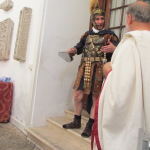 Inside was a “museum-typical” room that would ultimately be filled to capacity by about 70 attendees. Not only was “Sand and Blood” being presented, but also a small number of other history based works from the same publisher. Some things are a dead giveaway and I knew I was in the right place was when I saw the Praetorian guard and senator at the entry door. Let the games begin, indeed.