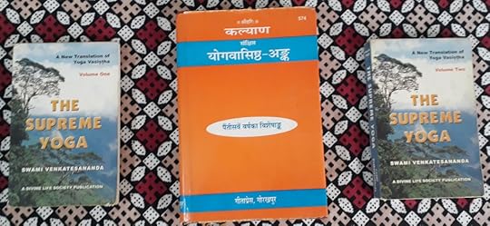 The two English versions shown in the picture above are composed by Swami Venkateshananda – a disciple of Swami Sivananda. He has condensed the Yogavashistha into two volumes with each volume having 365 pages of primary content – a page for each day of the year. It can be taken as a daily ritual of spiritual practice to read one page every day. As the composer of the original Yogavashistha claims, one can get enlightened just by its regular study. By the way, for the first time in this series I am using pictures of books which are part of my personal library.