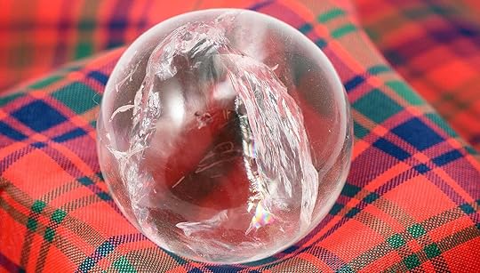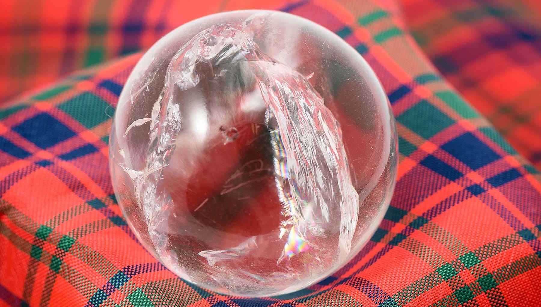 Recent photograph of the stone from the Clan Donnachaidh Museum.Seven centuries after its legendary discovery, the stone is now exhibited in the Clan Donnachaidh Museum in Pitlochry. It is a polished crystal ball, about the size of an apple. The clan’s warriors reputedly carried it into battle in a small metal cage atop their standard. In addition to bringing luck, and foretelling the outcome of battles, the Clan Donnachaidh subsequently claimed the stone had healing properties. It became the most celebrated charmstone or “Curing Stone’ in the history of Scotland.