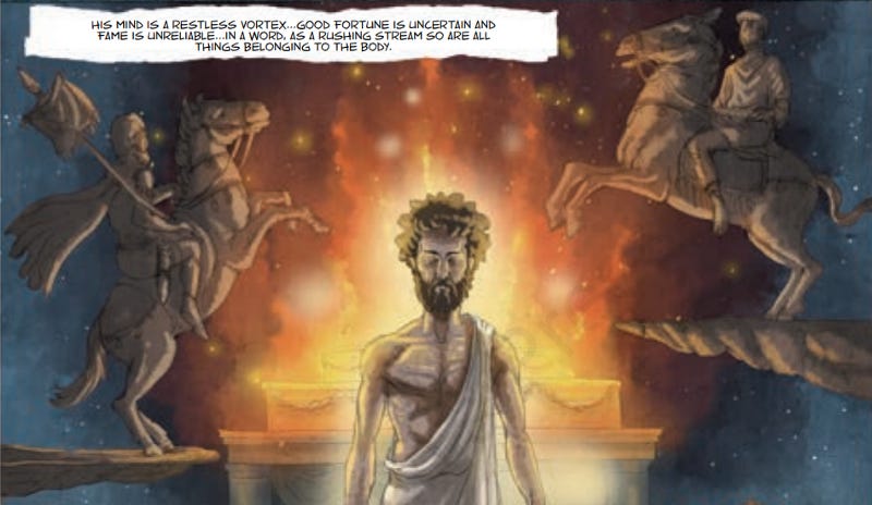Artwork from Verissimus, copyright Donald J. Robertson, reproduced by permission.ConclusionWe included most of these and many more anecdotes in our graphic novel, Verissimus: The Stoic Philosophy of Marcus Aurelius. Some of these less well-known details add richness to our understanding of Marcus’ character, and that can allow us to feel his presence more when reading the Meditations, allowing him to become a three-dimensional human being.
